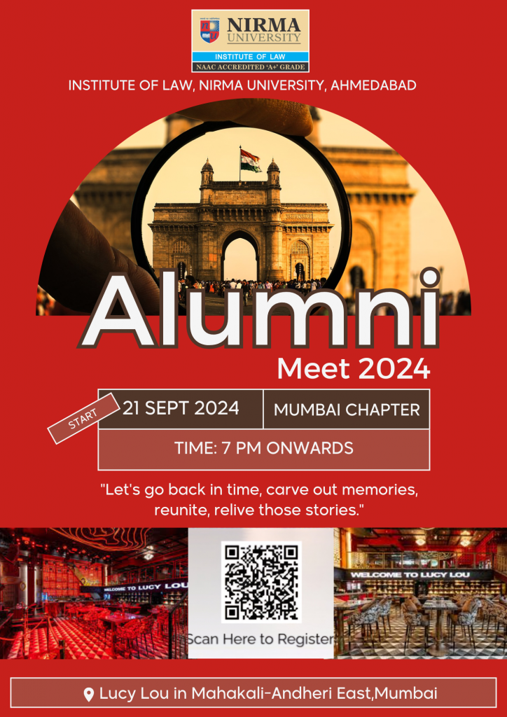 Institute of Law, Nirma University Alumni Meet 2024 organised on September 21, 2024 at 7:00 PM onwards.